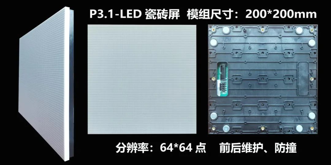 LED瓷砖屏采用自主开模底壳,纯PC白色面罩,点间距有P3.125,尺寸为:200*200mm、P8.928,尺寸为250*250mm;显示亮度高,色彩柔和;是各种白色元素展厅不可缺少的产品。
