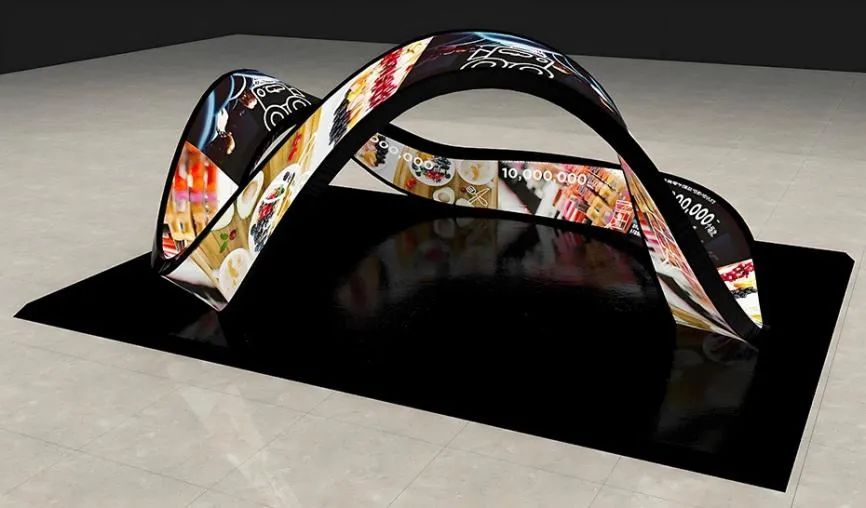 采用柔性异形软屏技术,可无缝拼接成莫比乌斯环、螺旋楼梯等创意造型,适配酒吧、科技馆等场景; 搭载微间距模组,刷新率3840Hz,亮度自适应调节,确保动态画面无拖影。