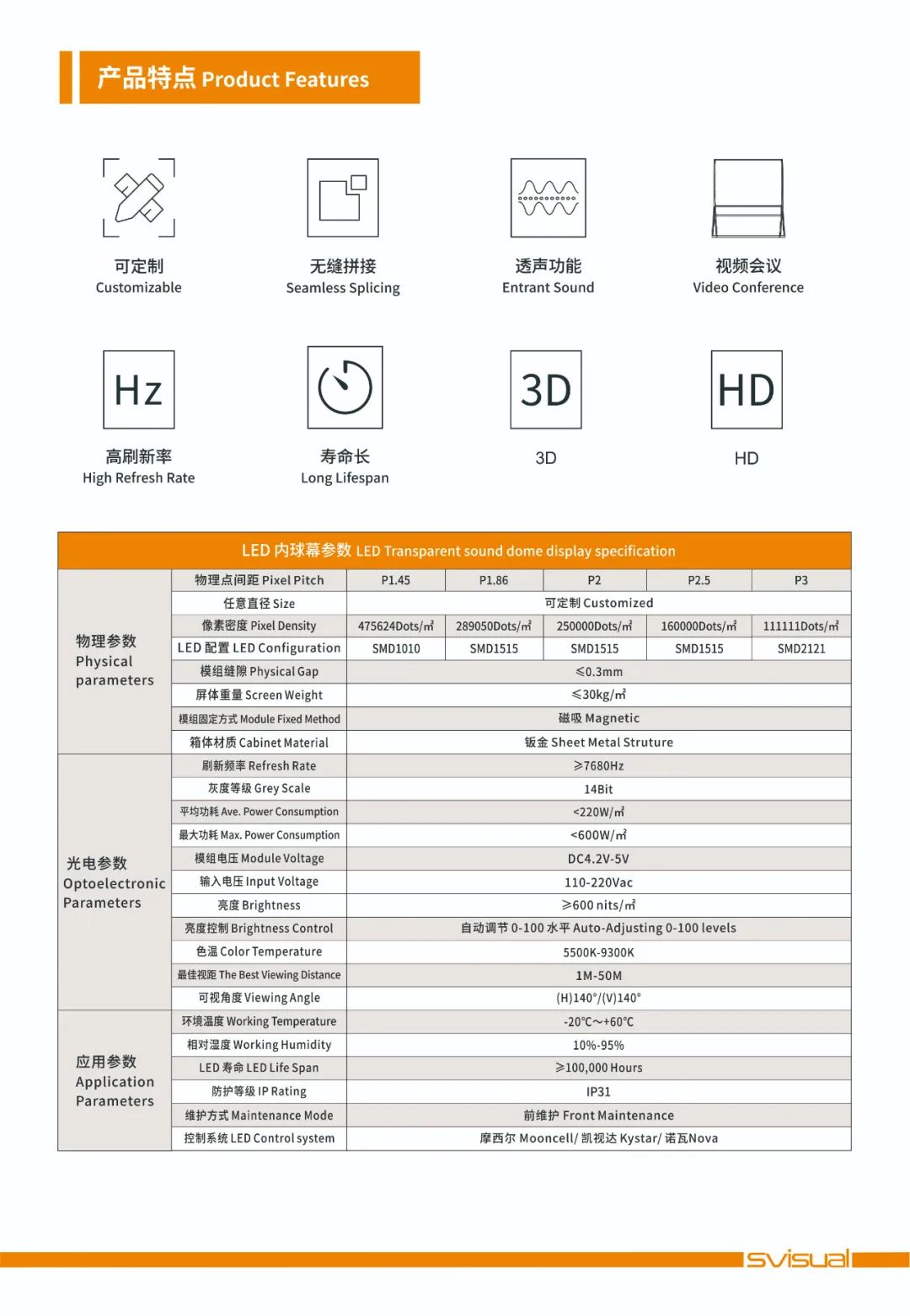 广泛运用于商城、科技馆、博物馆等场景,LED球幕呈现并创造了独特的沉浸式视觉效果,独特的透声设计满足立体声需求,公司已实现微小间距LED透声球幕,具有全套球幕影院、飞行影院解决方案。极致创意为世界创造光显艺术之美。