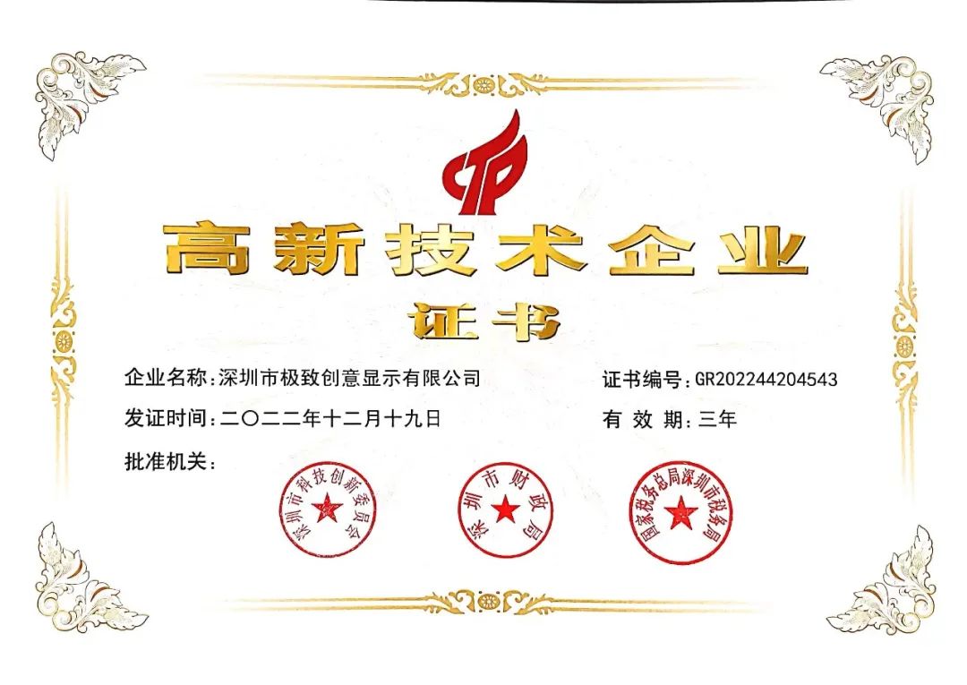 深圳市极致创意显示有限公司成立于2018年,是一家专注于创意LED显示屏的研发、生产、销售和工程服务为一体的国家级高新技术企业,专精特新中小企业,是2019年国庆70周年阅兵大型创意LED显示屏指定供应商,是2021年中华人民共和国第14届全国运动会开幕式12000平米创意LED显示屏独家供应商。