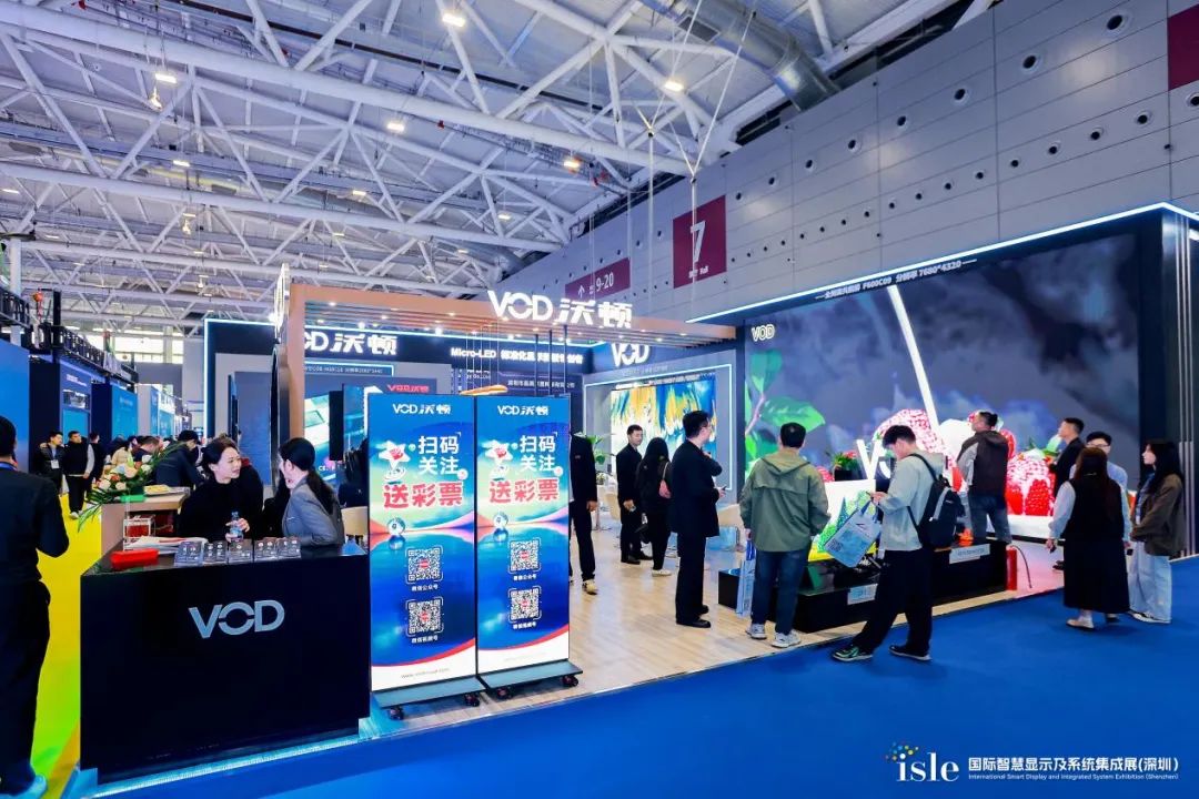 沃顿科技在isle展会上亮相Firefly系列COB大屏、Lark系列P2.6双面大屏等产品 ,其中Firefly系列F600C09可兼容COB实像素、虚拟像素,Lark系列双面显示技术先进,色彩还原精准,吸引众多观众驻足。