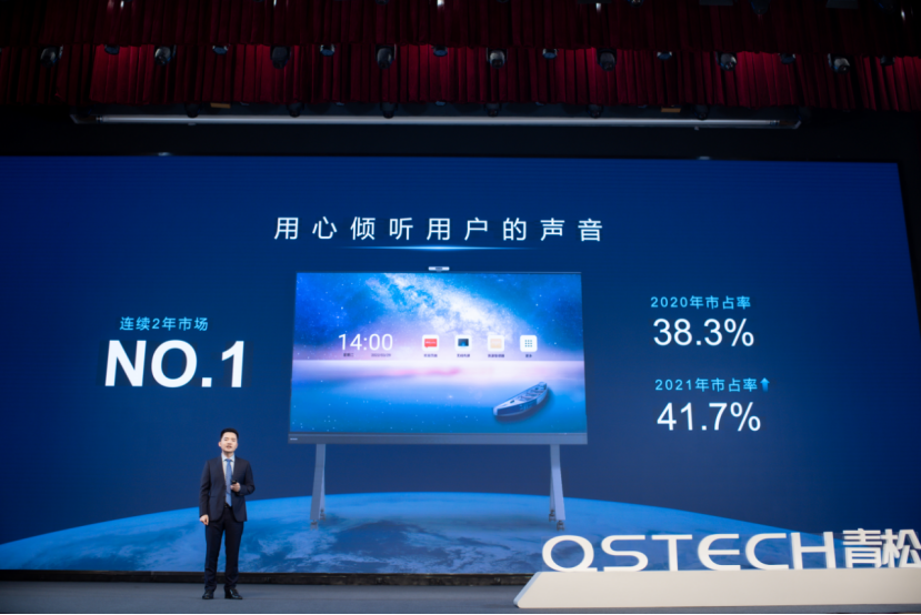 针对数字化转型下的复杂需求,QSTECH青松于发布会上推出了全新的LED一体机,整机配件为遥控器、摄像头、无线传屏器、移动支架及维护工具,屏幕覆盖120英寸—220英寸,支持会议、演讲、展厅、报告厅等多重场景。