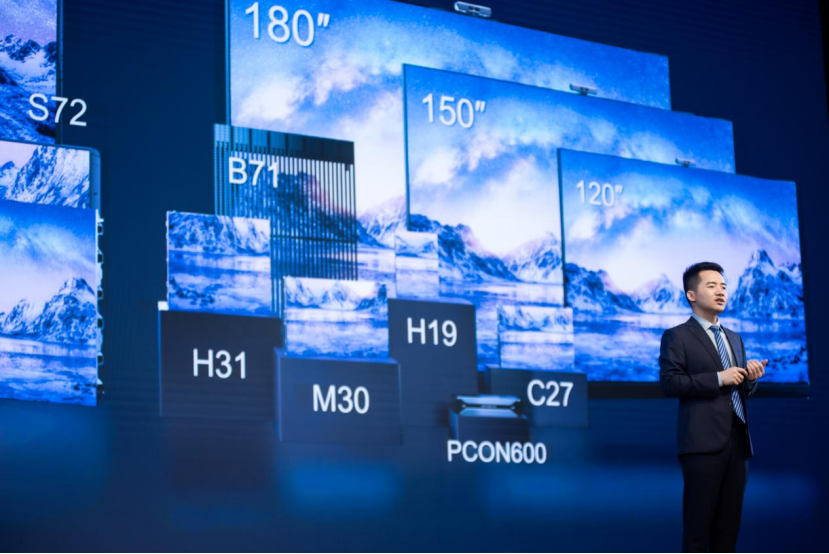 据悉,C27系列采用COB集成封装技术,屏体表面光滑平整,正面防护等级高达IP65,防磕碰、耐冲击,产品水平/垂直视角≥170°,从任何角度观看都能将画面一览无余,且不容易视觉疲劳。C27系列还搭配了全自研Hyper-bit增强技术,让灰阶呈现最高提升16倍,让画面还原更接近真实,实现了20000:1的超高对比度。