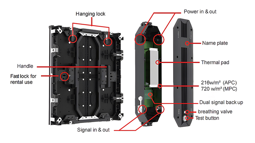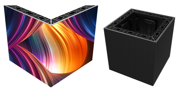 模块化设计,采用全新专利自锁结构,无需工具可完成产品安装和维护。防撞角保护设计,可以 360°防止磕灯、摔灯,从而提高产品使用寿命。通过 CNC 加工,箱体可直角(90°)拼接,同时支持立方体安装。支持吊装、地装、错位和异形拼装。选配弧形装置,可以让屏幕弯曲成弧面;只需 2 步,精度高达 0.1mm。在租赁活动中可制作许多动感的创意形状,例如大型表演、活动,音乐节等。