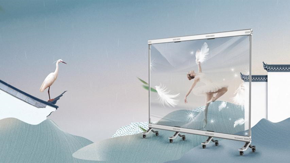1、全屏透明隐形:整屏造明无框架;无缝大面积拼接;背面隐形无泛光。3D 悬浮影像,全息影像效果: