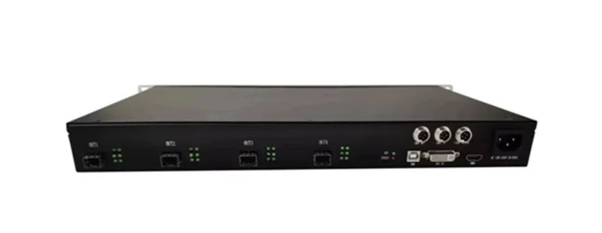 SMS1000 具有高速稳定的数字可扩展电路,FPGA 入式技术及复杂的逻辑运算,采用光电子技术融合,将数模输入信号通过光子芯片接收到的电信号“透传转换”成持续的激光束,形成光信号调制、光信号传输、光信号处理,光信号探测等,从而实现了从控制端到显示端全链路光纤传输。
