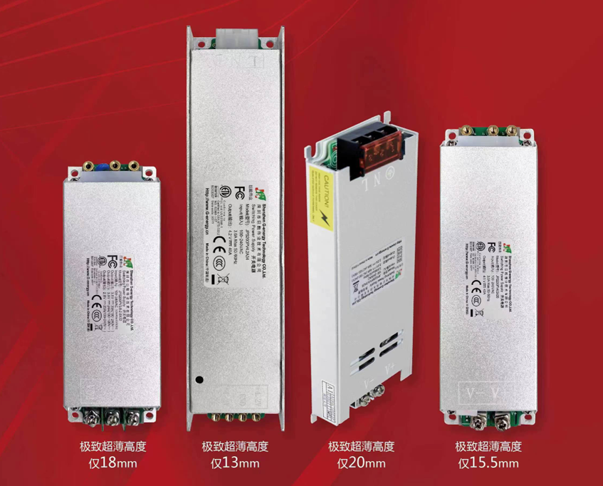 新一代 TV一体机及 Mini/Micro LED 专用超薄电源,该电源超薄/超轻/其高度仅仅 13mm/15mm/18mm,4.2v 供电节能环保;同高度尺寸还开发了共阴和均流功能、且内置 PFC 功率因数校正, PF值大于0.95,全电压输入和多重保护全球通用并认证齐全、在目前市场上属于首屈一指的创新技术