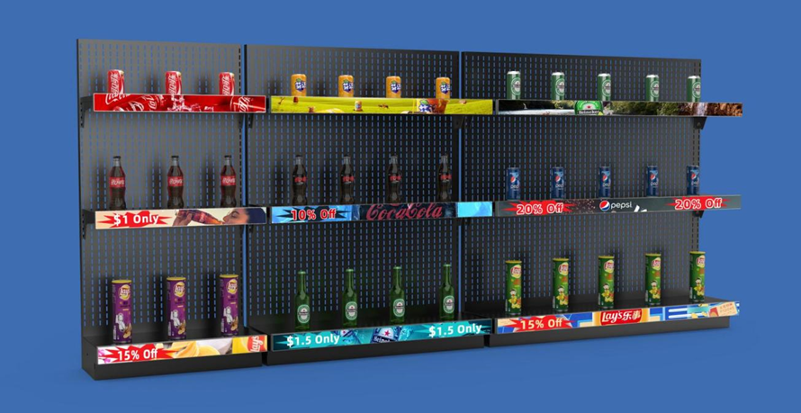 新光台利用具有自己知识产权的 COB 产品研发出的货架屏,充分展示了 COB抗撞、耐腐蚀、高清晰度的产品特点,得到了客户的充分认可和市场的检验。目前已进入亚利桑那州沃尔玛超市、纽约 whole food 食品超市、和英国 Deloitte(德勤)总部的展示大厅,由于 COB 先天具有的抗冲击、耐腐蚀等特点,特别适合超市里面的运用。在国内,LED 真正投入到实际运用的货架屏也就只有新光台,新光台也进行了专利申请和也有已批复的专利。在国际、国内行业中,新光台全彩 COB 货架屏在制造技术革新、知识产权的申报等方面,处于领先地位。
