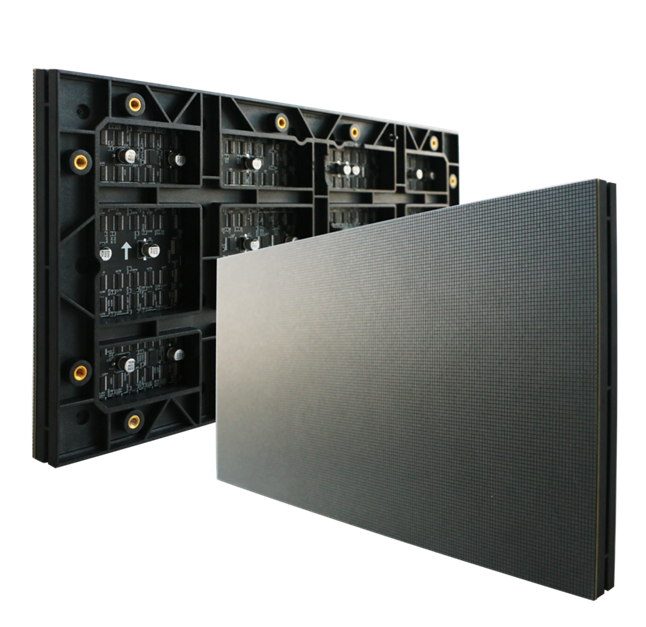 同一款框架以及内部部件,可以兼容所有点间距的模组。所有部件包括模组、电源、接收卡、Hub 板、电源线等,都是可以互换的,能显著减低客户备品的库存压力。当客户需要升级、改造屏幕时,这个设计能帮客户节省大部分成本,因为只需要更换新模组,费用仅占更换整个新屏幕的 30%。